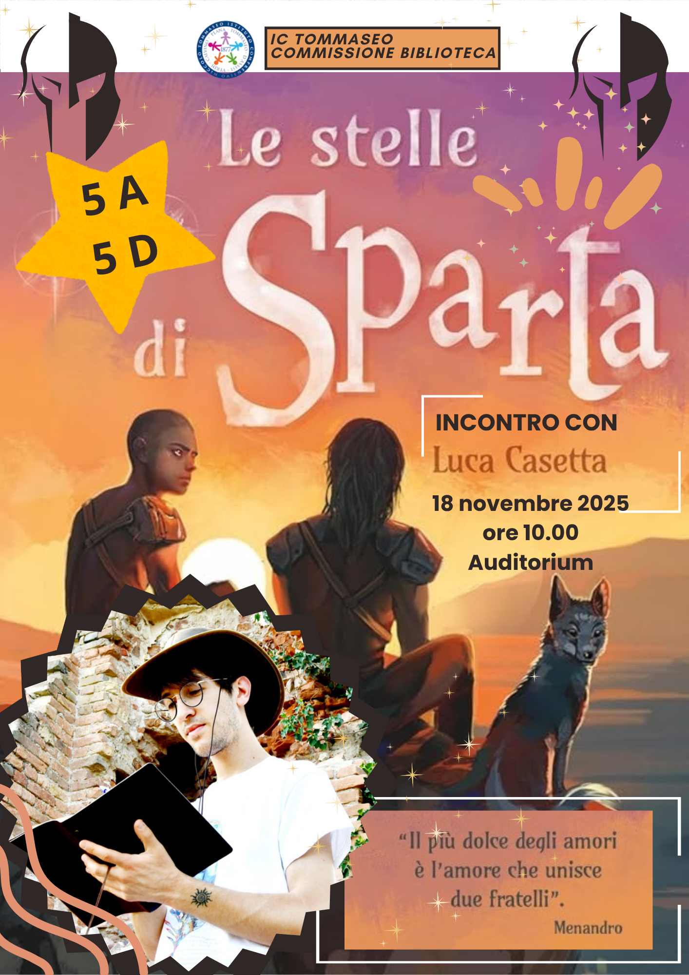 Martedì 18 novembre 2025, alle ore 10.00, nell’Auditorium dell’Istituto, le classi 5A e 5D incontreranno Luca Casetta, autore del romanzo Le stelle di Sparta.